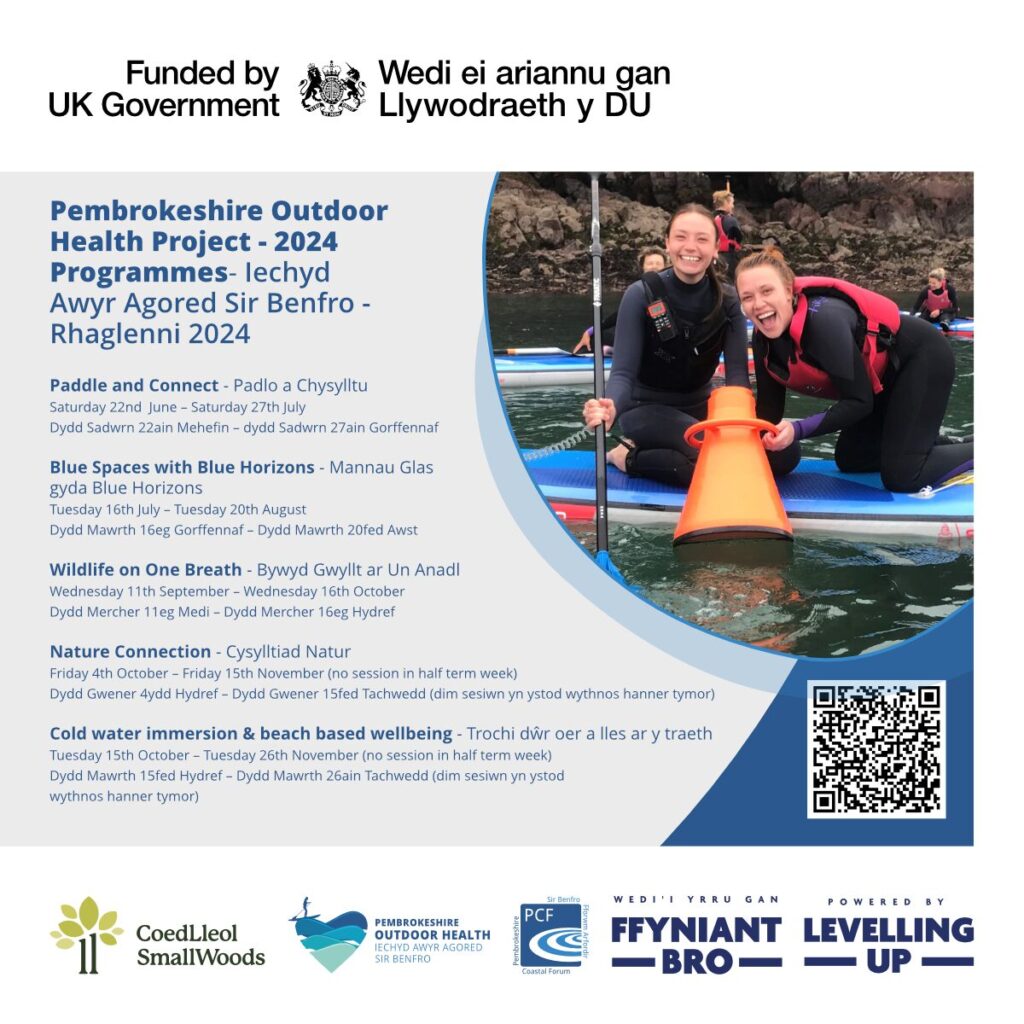 Rydym yn falch iawn o allu cyhoeddi’r rhaglenni canlynol ar gyfer y Prosiect Iechyd Awyr Agored yn 2024. Rydym yn gweithio mewn partneriaeth â Coed Lleol i gynnal y sesiynau rhad ac am ddim hyn i bobl yn #SirBenfro a hoffai fod yn egnïol yn yr awyr agored i wella eu llesiant meddyliol a chorfforol.